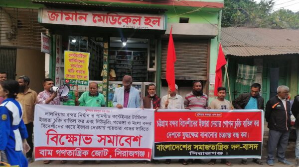 চট্টগ্রাম বন্দর ইজারা বাতিলের দাবিতে সিরাজগঞ্জে বাম গণতান্ত্রিক জোটের বিক্ষোভ