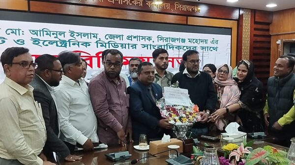 সিরাজগঞ্জে কর্মরত গণমাধ্যমকর্মীদের সঙ্গে নতুন জেলা প্রশাসকের মতবিনিময়