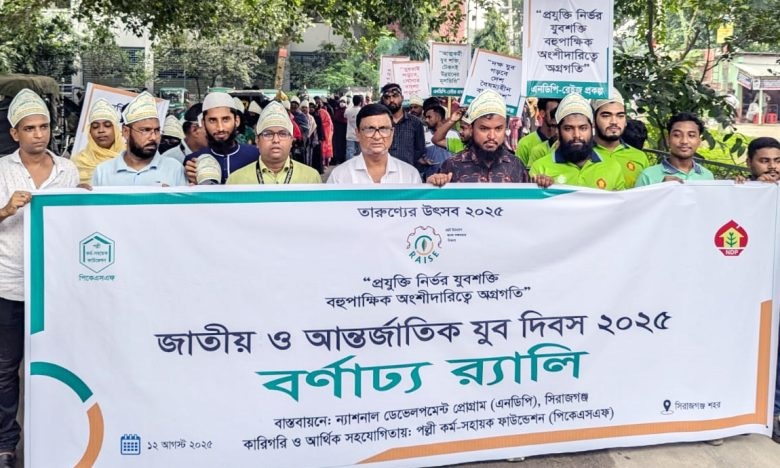 ন্যাশনাল ডেভেলপমেন্ট প্রোগ্রাম (এনডিপি) বাস্তবায়িত রেইজ প্রকল্পের আওতায় এবং পল্লী কর্ম-সহায়ক ফাউন্ডেশনের অর্থায়নে বর্ণাঢ্য আয়োজনে জাতীয় ও আন্তর্জাতিক যুব দিবস-২০২৫ পালন করা হয়েছে। “প্রযুক্তি নির্ভর যুবশক্তি, বহুপাক্ষিক অংশীদারিত্বের অগ্রগতি” প্রতিপাদ্যকে সামনে রেখে সিরাজগঞ্জ শহরের এনডিপি শহর শাখা থেকে মুজিব সড়ক পর্যন্ত একটি র্যালি অনুষ্ঠিত হয়। র্যালিতে বিপুল সংখ্যক যুবকের উপস্থিতি দেখা যায়। অংশগ্রহণকারীরা ব্যানার, ফেস্টুন ও প্লাকার্ড নিয়ে শহর প্রদক্ষিণ করে জেলা প্রশাসকের কার্যালয়ে সমবেত হন। জেলা প্রশাসকের কার্যালয়ের সামনে খোলা মাঠে যুব দিবসের তাৎপর্য তুলে ধরে বক্তব্য রাখেন এনডিপি’র প্রকল্প ফোকাল পারসন ও পরিচালক (ঋণ সহায়তা কর্মসূচি) মোসলেম উদ্দিন আহমেদ, প্রকল্প সমন্বয়কারী কৃষ্ণ দাস সাহা, আরএমটিপি প্রকল্প সমন্বয়কারী মাসুদ মন্ডল এবং যুব প্রশিক্ষণ কেন্দ্রের সিনিয়র প্রশিক্ষক (পশুপালন) কৃষিবিদ এস.এম কামরুজ্জামান। বক্তারা বলেন, “যৌবন হলো জীবনের শ্রেষ্ঠ সময়। এই সময়কে কাজে লাগাতে হবে অকল্যাণের বিরুদ্ধে এবং ন্যায়ের পক্ষে সংগ্রামে।” তারা উল্লেখ করেন, দেশের শ্রমশক্তির বড় অংশই যুবসমাজ, যাদের অবদান প্রবাসী শ্রমবাজার থেকে শুরু করে তৈরি পোশাকশিল্প পর্যন্ত বিস্তৃত। দেশের অর্থনীতির মূল চালিকাশক্তি হিসেবে যুবসমাজকে কেন্দ্রে রেখে পরিকল্পনা গ্রহণের গুরুত্ব প্রাধান্য পায়। এছাড়াও বক্তারা যুবসমাজের সৃজনশীলতা, জ্ঞান ও প্রযুক্তিচর্চাকে উৎসাহিত করার পাশাপাশি ব্যবসা-বাণিজ্য ও বহুপাক্ষিক অংশীদারিত্বে বিনিয়োগের সুযোগ সৃষ্টি ও সরকারি তদারকি নিশ্চিত করার গুরুত্ব তুলে ধরেন। তারা বলেন, “যুবসমাজকে নেতিবাচক প্রবণতা থেকে মুক্ত করে সঠিক দিক নির্দেশনা দেওয়া এবং দেশের উন্নয়ন অগ্রযাত্রায় সক্রিয় অংশীদার হিসেবে গড়ে তোলা হোক আন্তর্জাতিক যুব দিবস উদযাপনের মূল লক্ষ্য।” উক্ত অনুষ্ঠানে অংশগ্রহণকারীরা যুবসমাজের ক্ষমতায়ন ও ভবিষ্যৎ গঠনের প্রতি উৎসাহ ও প্রতিশ্রুতি ব্যক্ত করেন।