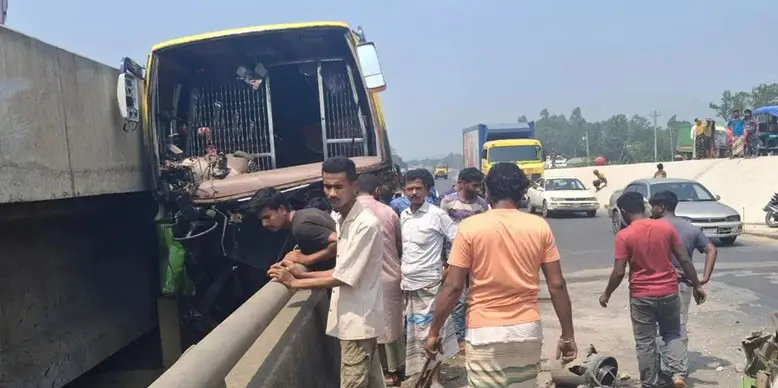 সিরাজগঞ্জে মহাসড়কে বাসের চাকা ফেটে সেতুতে ধাক্কা, নিহত ৩
