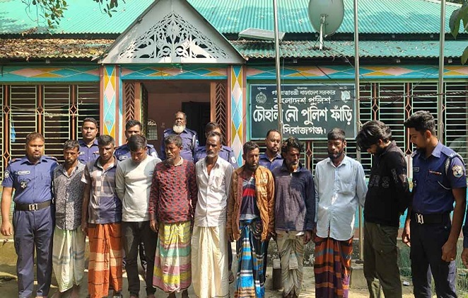 সিরাজগঞ্জ জেলার চৌহালী উপজেলার যমুনা নদীতে বালুবাহী বাল্কহেড থেকে চাঁদা তোলার সময় এক ইউপি সদস্য ও এক ছাত্র সমন্বয়কারীসহ ১০ জনকে আটক করেছে নৌ-পুলিশ।