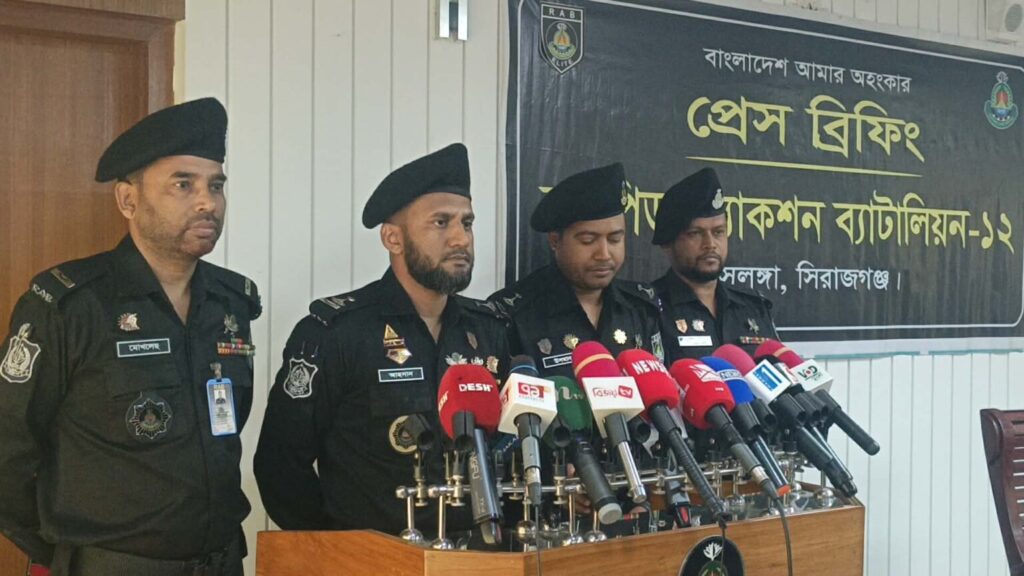 সোমবার (২৩ ফেব্রুয়ারি) সকাল সাড়ে ১১টায় আয়োজিত এক প্রেস কনফারেন্সে এ তথ্য নিশ্চিত করেন র্যাব‑১২, সিরাজগঞ্জের ভারপ্রাপ্ত অধিনায়ক মেজর মোঃ আহসান হাবিব।