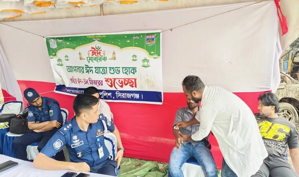 ঈদযাত্রায় স্বস্তি ফেরাতে সিরাজগঞ্জ জেলা পুলিশের বিশেষ সেবা কার্যক্রম