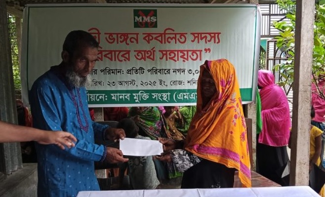সিরাজগঞ্জ জেলার চৌহালী, বেলকুচি, শাহজাদপুর ও পাশের পাবনা জেলার বেড়া উপজেলার নদীভাঙনে ক্ষতিগ্রস্ত পরিবারের মাঝে নগদ অর্থ সহায়তা দিয়েছে বেসরকারি উন্নয়ন সংস্থা মানব মুক্তি সংস্থা (এমএমএস)।