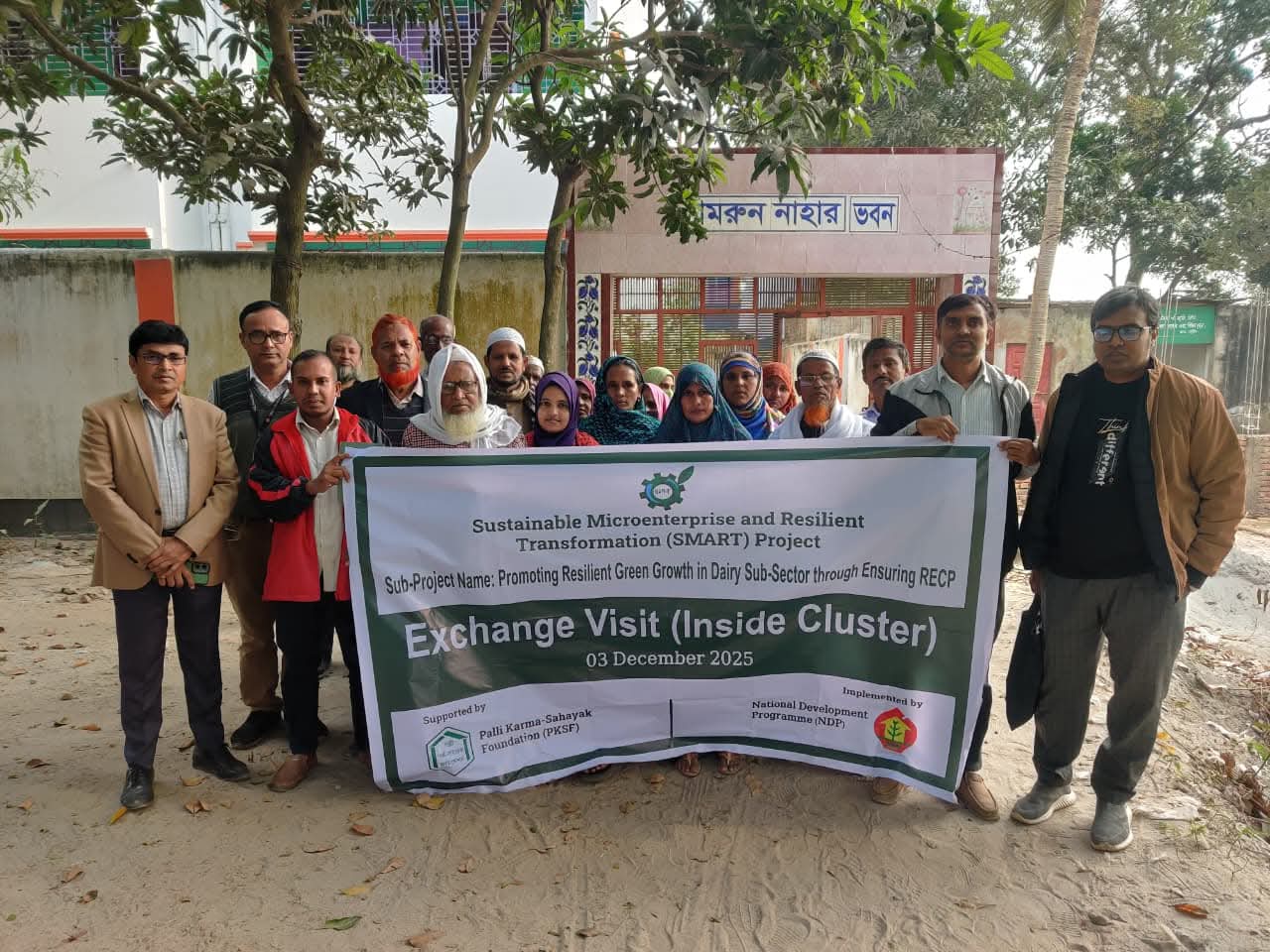 দুগ্ধশিল্পে সবুজ প্রবৃদ্ধি ও পরিবেশবান্ধব উৎপাদন নিশ্চিত করতে ন্যাশনাল ডেভেলপমেন্ট প্রোগ্রাম (এনডিপি) বাস্তবায়িত SMART (Sustainable Microenterprise and Resilient Transformation) প্রকল্পের আওতায় ডেইরি ক্লাস্টারের ক্ষুদ্র উদ্যোক্তাদের জন্য ইনসাইড ক্লাস্টার এক্সচেঞ্জ ভিজিট অনুষ্ঠিত হয়েছে।