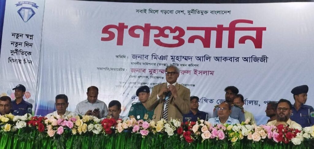 সিরাজগঞ্জে দুর্নীতি দমন কমিশনের (দুদক) ১৮১তম গণশুনানিতে উত্থাপিত ৯৫টি অভিযোগের মধ্যে তাৎক্ষণিকভাবে ৩৪টি নিষ্পত্তি করা হয়েছে। এছাড়া ৩২টি অভিযোগ অনুসন্ধানের জন্য দুদক কর্তৃক বিভাগীয় তদন্তের নির্দেশ দেওয়া হয়। আদালতে মামলা থাকায় ৩টি অভিযোগে সিদ্ধান্ত হয়নি এবং ২৬টি অভিযোগ পরবর্তী পর্যবেক্ষণে রাখা হয়েছে। রবিবার সকাল ৯টা থেকে বিকেল ৫টা পর্যন্ত জেলা শিল্পকলা একাডেমি মিলনায়তনে অনুষ্ঠিত এই গণশুনানিতে বিভিন্ন সরকারি দপ্তরে সেবা প্রাপ্তিতে হয়রানি ও বঞ্চনার শিকার নাগরিকেরা তাদের অভিযোগ উপস্থাপন করেন। শুনানিতে ১৩৪টি অভিযোগ জমা পড়লেও ৯৫টি উত্থাপিত হয়। প্রধান অতিথির বক্তব্যে দুদকের কমিশনার (তদন্ত) মিঞা মুহাম্মদ আলি আকবার আজিজী বলেন, “সুনীতি নয় তাই দুর্নীতি। সেবাদাতা ও সেবাগ্রহীতার দ্বন্দ্ব ও অনৈতিক কর্মকাণ্ড থেকেই দুর্নীতির প্রসার ঘটে। দুর্নীতি দমন কমিশন জিরো টলারেন্স নীতিতে কাজ করছে এবং করবে।” গণশুনানিতে সভাপতিত্ব করেন জেলা প্রশাসক মুহাম্মদ নজরুল ইসলাম। স্বাগত বক্তব্য রাখেন দুদকের রাজশাহী বিভাগীয় কার্যালয়ের পরিচালক মো. ফজলুল হক। বিশেষ অতিথি হিসেবে উপস্থিত ছিলেন দুদকের মহাপরিচালক (প্রতিরোধ) মো. আখতার হোসেন, মহাপরিচালক (তদন্ত-১) মুহাম্মদ রেজাউল করিম এবং পুলিশ সুপার মো. ফারুক হোসেন। কানায় কানায় পূর্ণ মিলনায়তনে সরকারি-বেসরকারি প্রতিষ্ঠানের কর্মকর্তা-কর্মচারী, শিক্ষার্থী, সাংবাদিক ও সাধারণ মানুষ অংশগ্রহণ করেন। দুদকের উপপরিচালক (জনসংযোগ) মো. আকতারুল ইসলাম জানান, এই গণশুনানির উদ্দেশ্য ছিল তাৎক্ষণিকভাবে সেবাবঞ্চিত মানুষের অভিযোগের সমাধান, সরকারি সেবায় স্বচ্ছতা নিশ্চিত করা এবং সরকারি কর্মকর্তাদের মধ্যে সততা, নিষ্ঠা ও জবাবদিহিতা বৃদ্ধি করা।