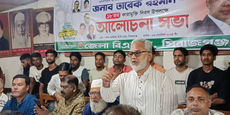 সিরাজগঞ্জে বিএনপির ভারপ্রাপ্ত চেয়ারম্যান তারেক রহমানের ১৮তম কারামুক্তি দিবস উপলক্ষে আলোচনা সভা অনুষ্ঠিত হয়েছে।