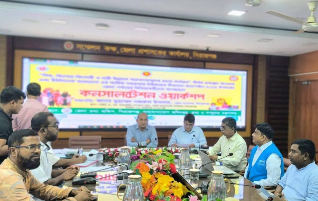 জেলা প্রশাসকের কার্যালয়ের শহীদ এ.কে শামসুদ্দিন সম্মেলন কক্ষে বুধবার (৮ অক্টোবর ২০২৫) “শিশু, কিশোর-কিশোরী ও নারী উন্নয়ন সচেতনতামূলক প্রচার কার্যক্রম” প্রকল্পের আওতায় কর্মশালাটি ইউনিসেফ বাংলাদেশের আর্থিক সহায়তায় আয়োজন করা হয়।